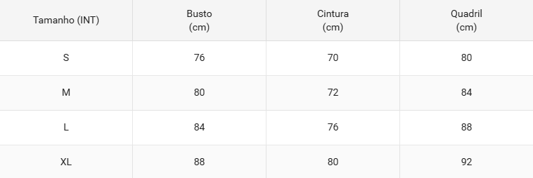 Consulte a TABELA DE MEDIDA ( para não errar na hora de escolher seu modelo preferido)